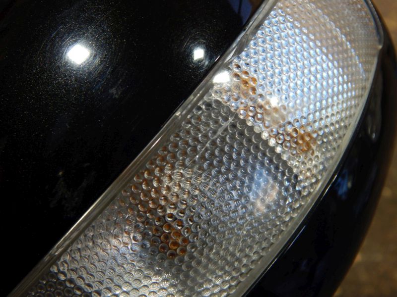 Außenspiegel links elektrisch mit 7-Pins; Kratzer am Gehäuse vorhanden und Blinkerglas hat einen kleinen Sprung; Vorfacelift